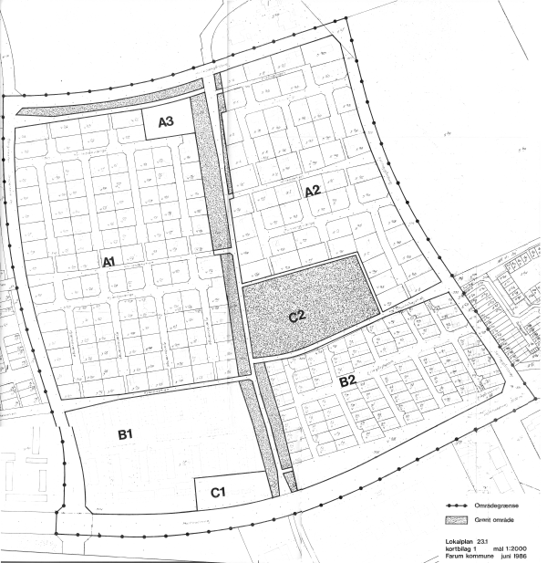 - - boligformål (A1-A3 afgrænses af Borgmester Jespersens Vej, Hvilebækgårdsvej, Solhøjgårdsvej samt Kjærbostien og Munkehøjstien, B1 og B2 afgrænses af Borgmester Jespersens Vej, Kjærbostien og Munkehøjstien, Solhøjgårdsvej samt Paltholmvej).